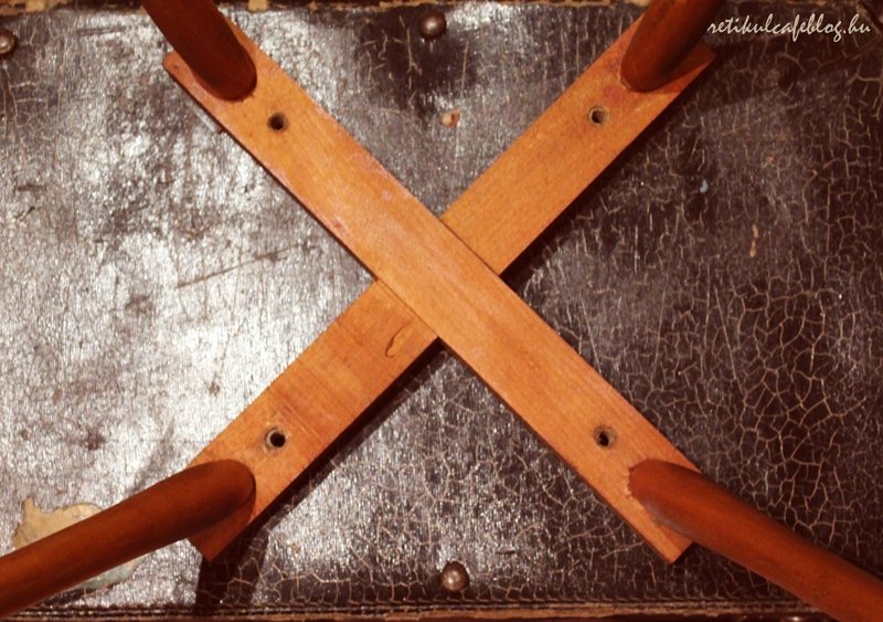 Az asztalka lábai igen stabilnak bizonyultak…Sőt mivel egy x formájú megerősítést is kapott annó,problémát sem okozott a bőrönddel való találkoztatása…