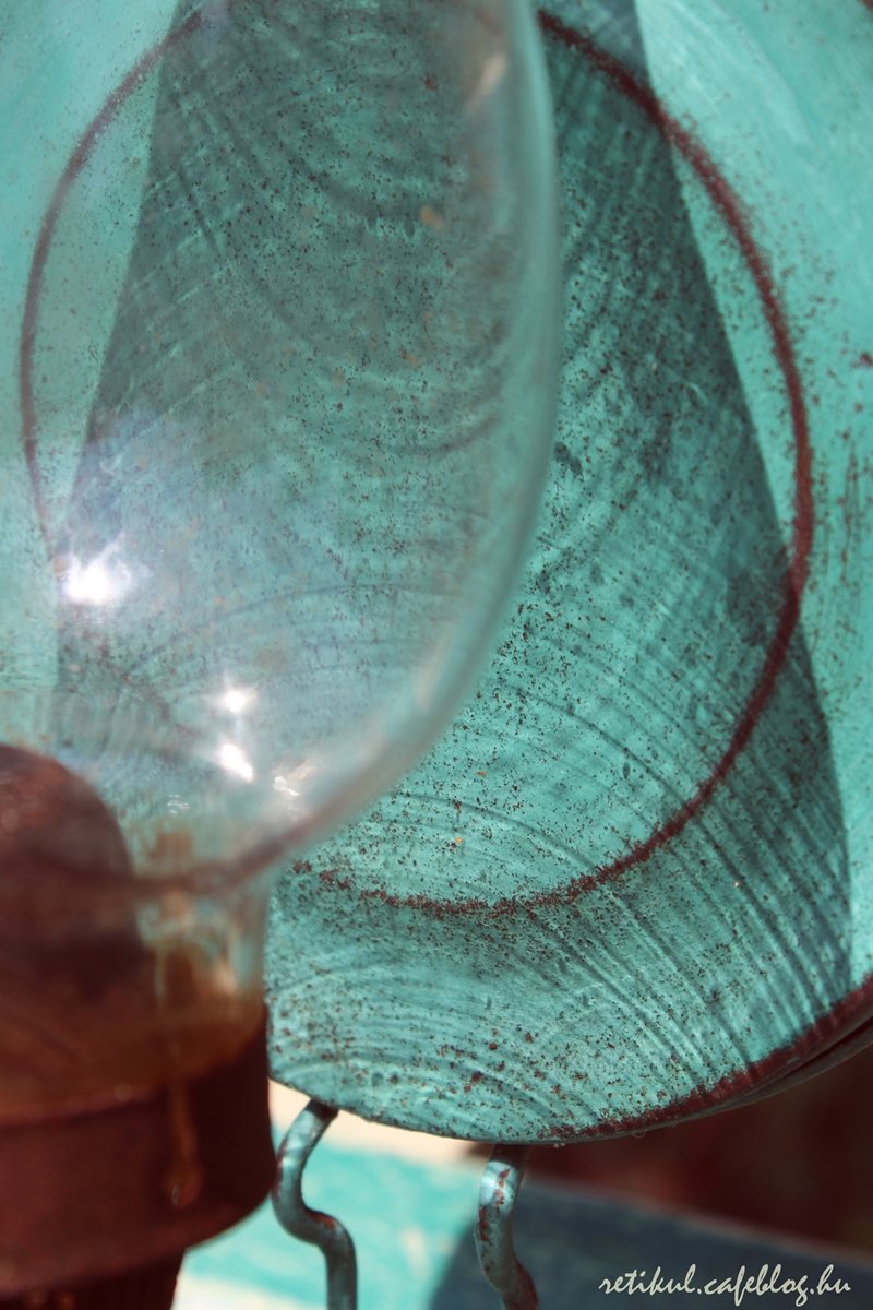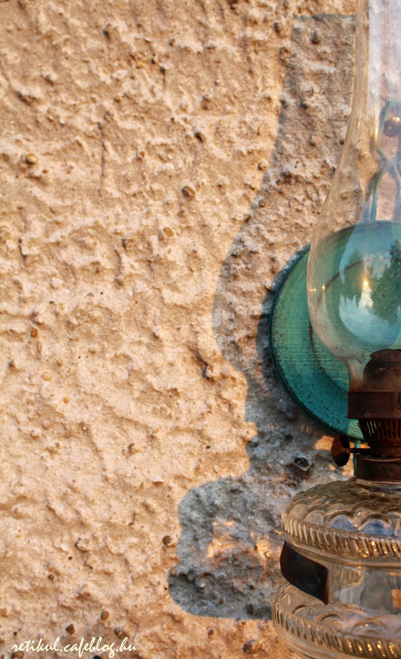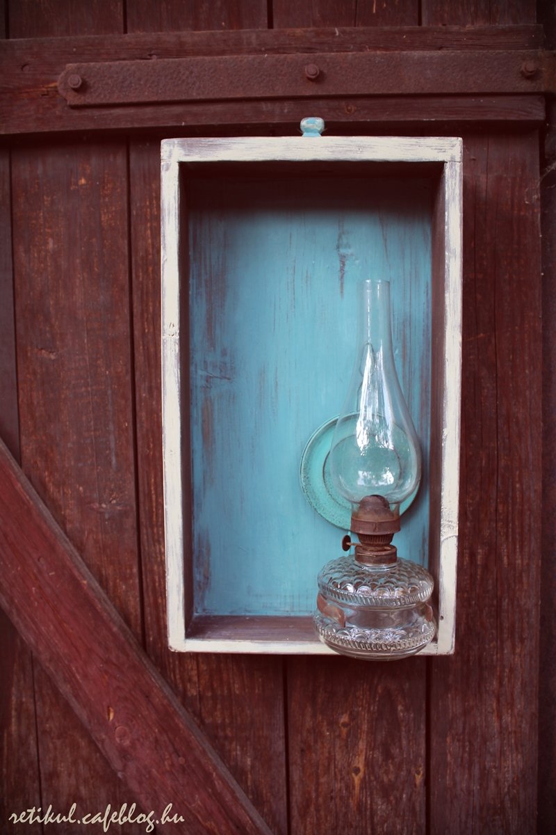 Egy régi poros ragacsos petróleum lámpát is megtisztogattam,a hátlapját pedig szintén kékre festettem,visszakoptattam.