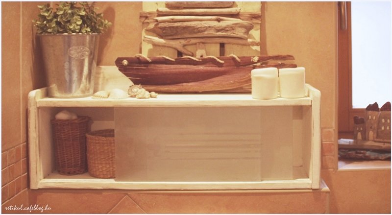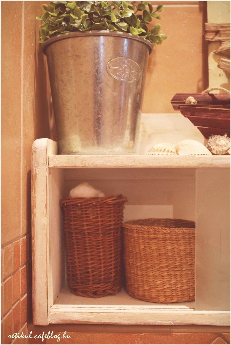 Nagyon szeretem,ha egy fürdő helység,szoba jellegű,meleg,ölelő.Sok kosárral,gyertyákkal,kagylóval,hangulat világítással.
