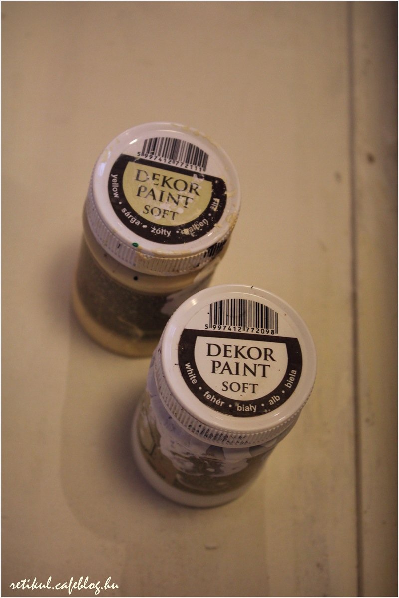 Szóval fogtam a festékeket(Pentart fehér és sárga DecorPaintSoft-ot használtam).