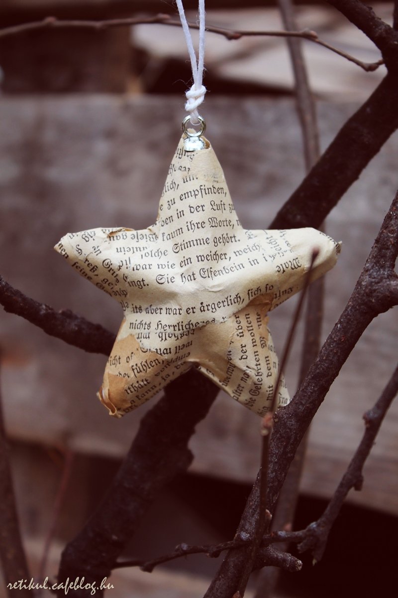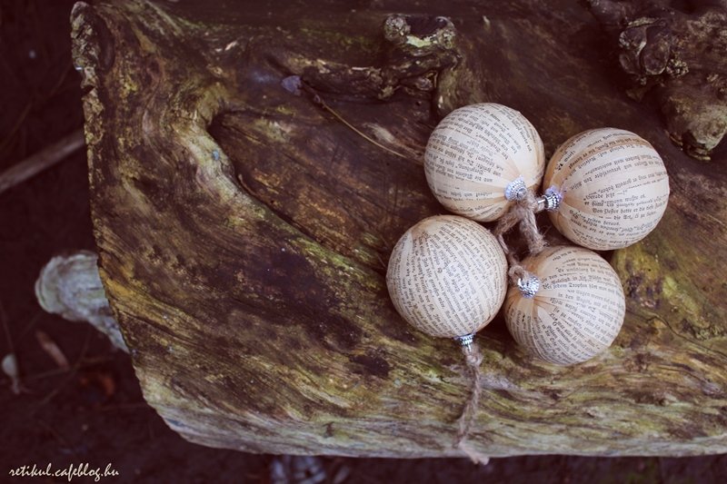 1.Régi,szétment könyvlapjait felcsíkoztam,tapétaragasztóval jól eláztattam és rásímítgattam a gömbökre.