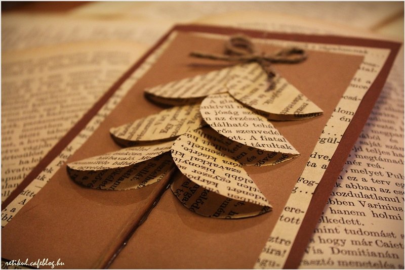 Majdnem mindegyikben szerepel régi könyvlap.Bementem egy antikváriumba és olyan könyvet kértem,ami szakadt,hiányos.Kaptam is ajándékba (persze mást is vásároltam) egy jó vaskos könyvet,sárga lapokkal…ennél szebb papírt elképzelni sem tudnék.