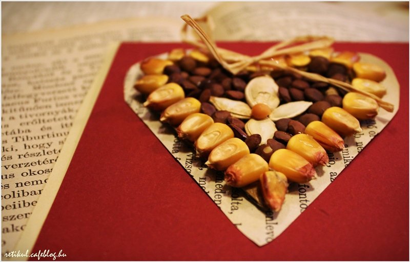 Karton alapra,kukorica,lencse,tökmag ragasztással.