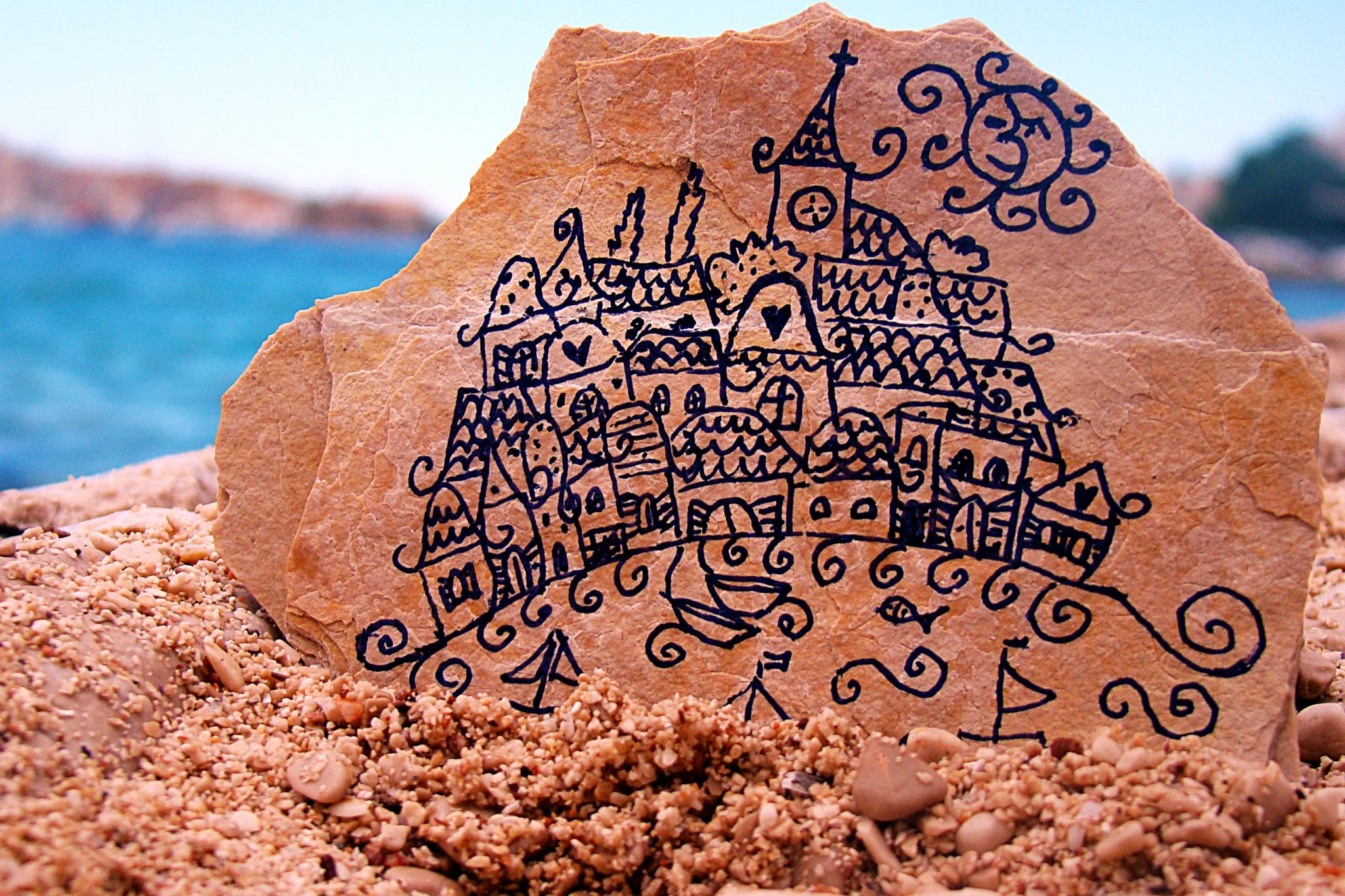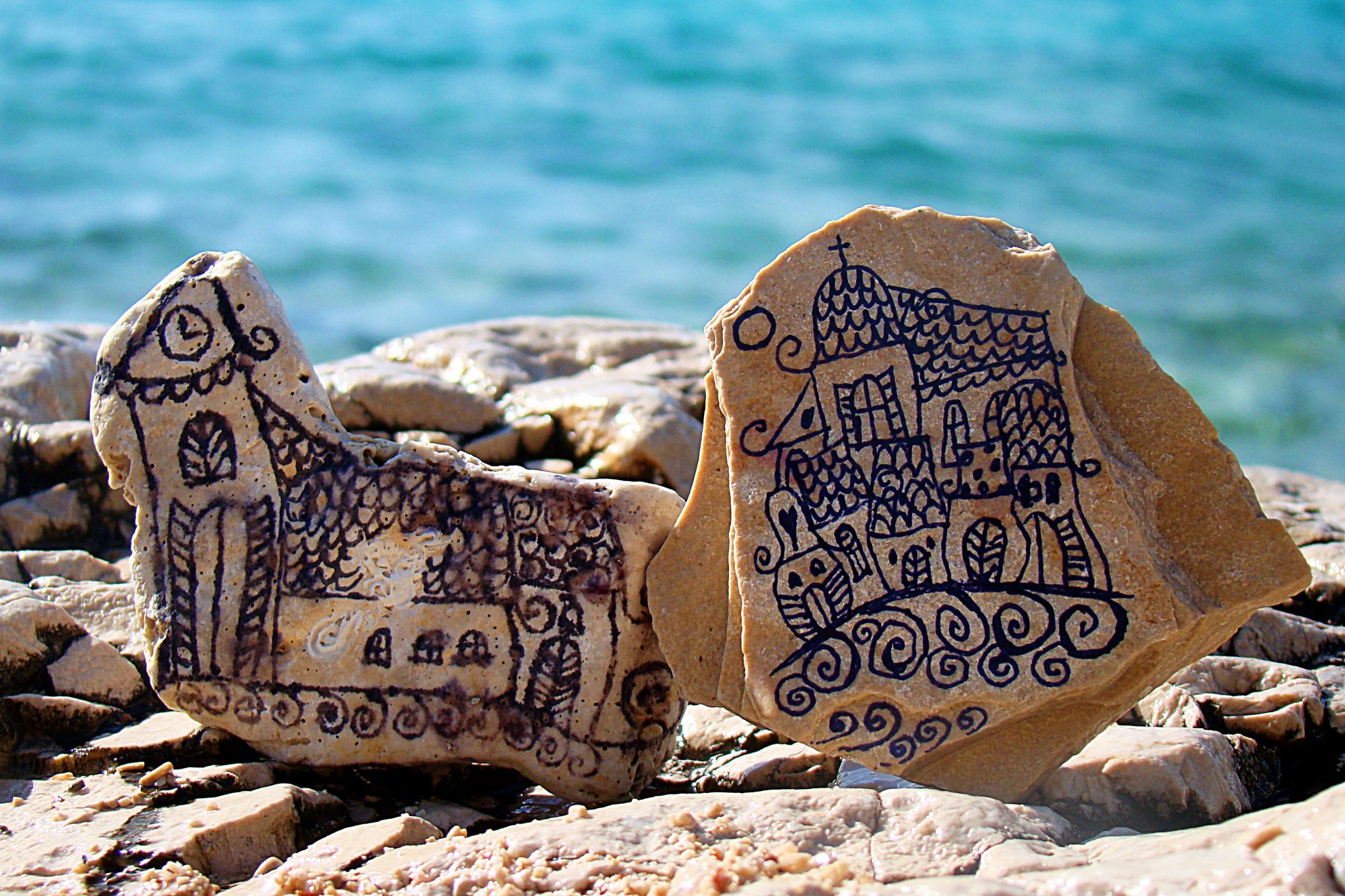 Lapos kövek,akril v.alkoholos tűfilc szükségeltetett hozzá.