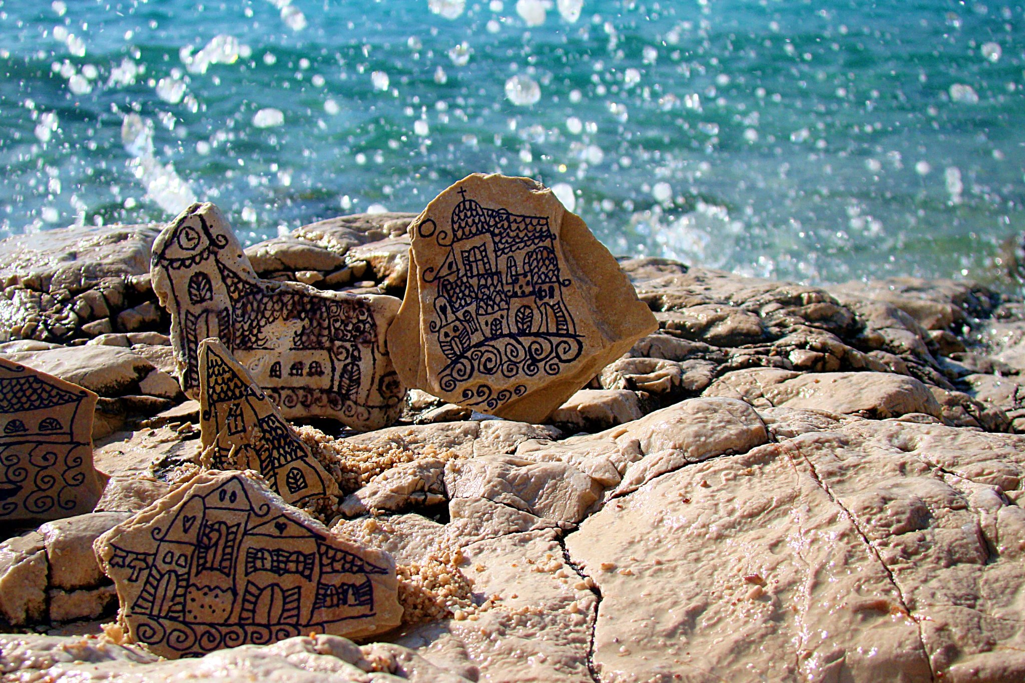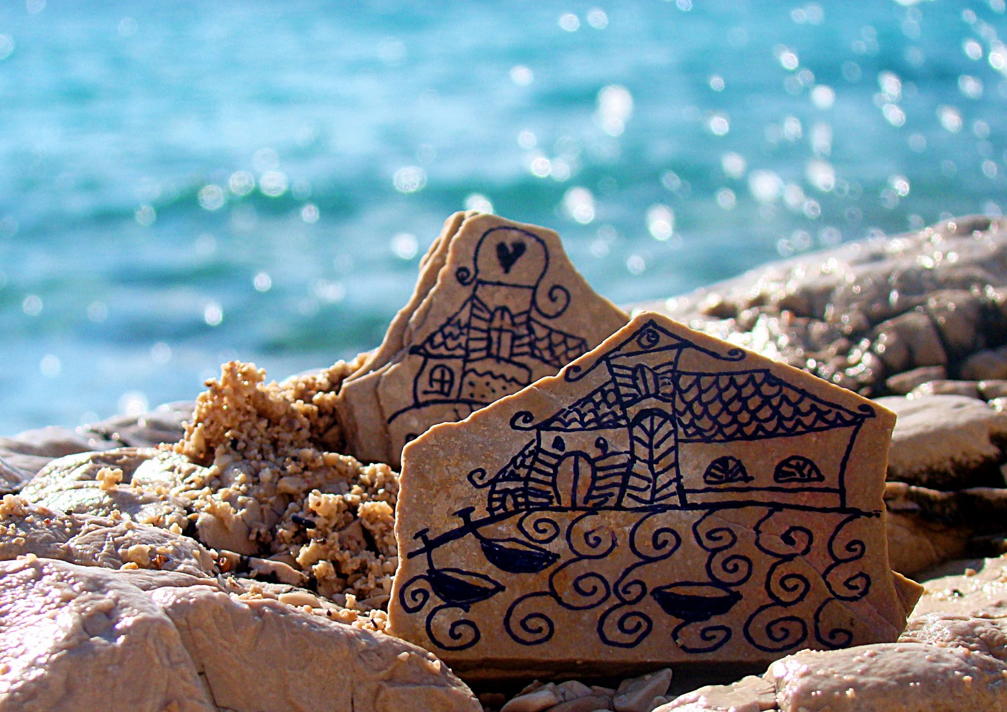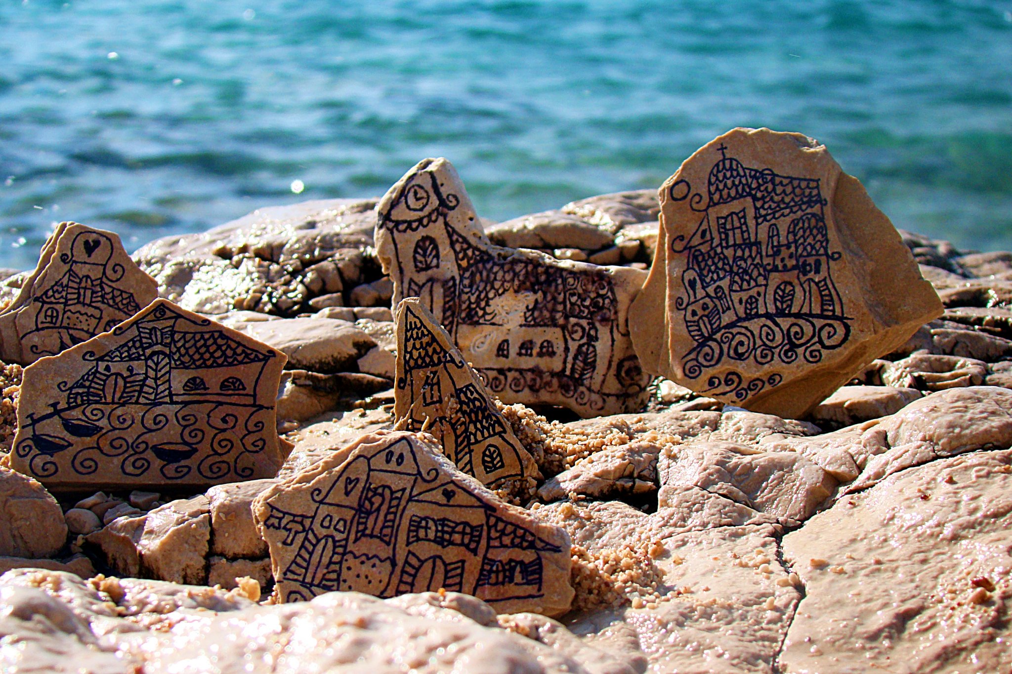 Apró ajándékokat készítettünk,lábunkat a tengerbe lógatva.