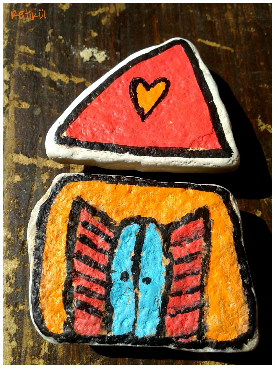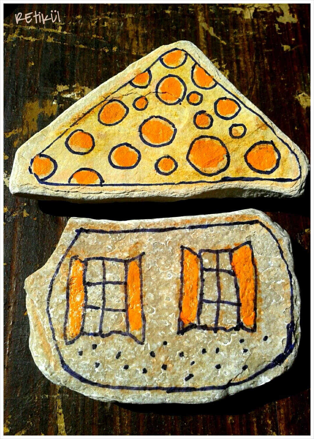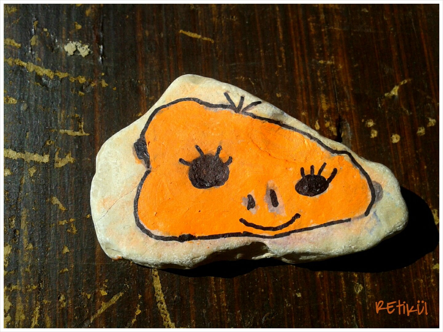 Itthon aztán találtam erre megfelelő filctollat,akril filcet v.lakkfilcet(pl.Marabu,Posca).Azóta ezeket használjuk a kövekre(is).
