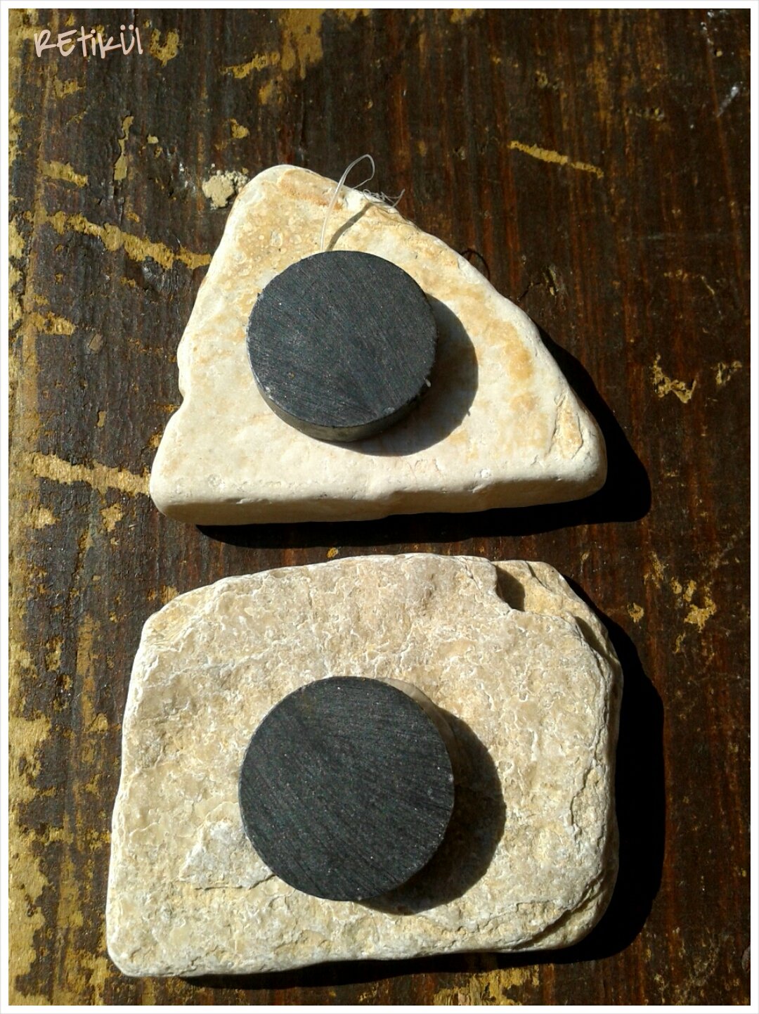 A kövek hátoldalára,ragasztópisztollyal mágnest ragasztottam:
