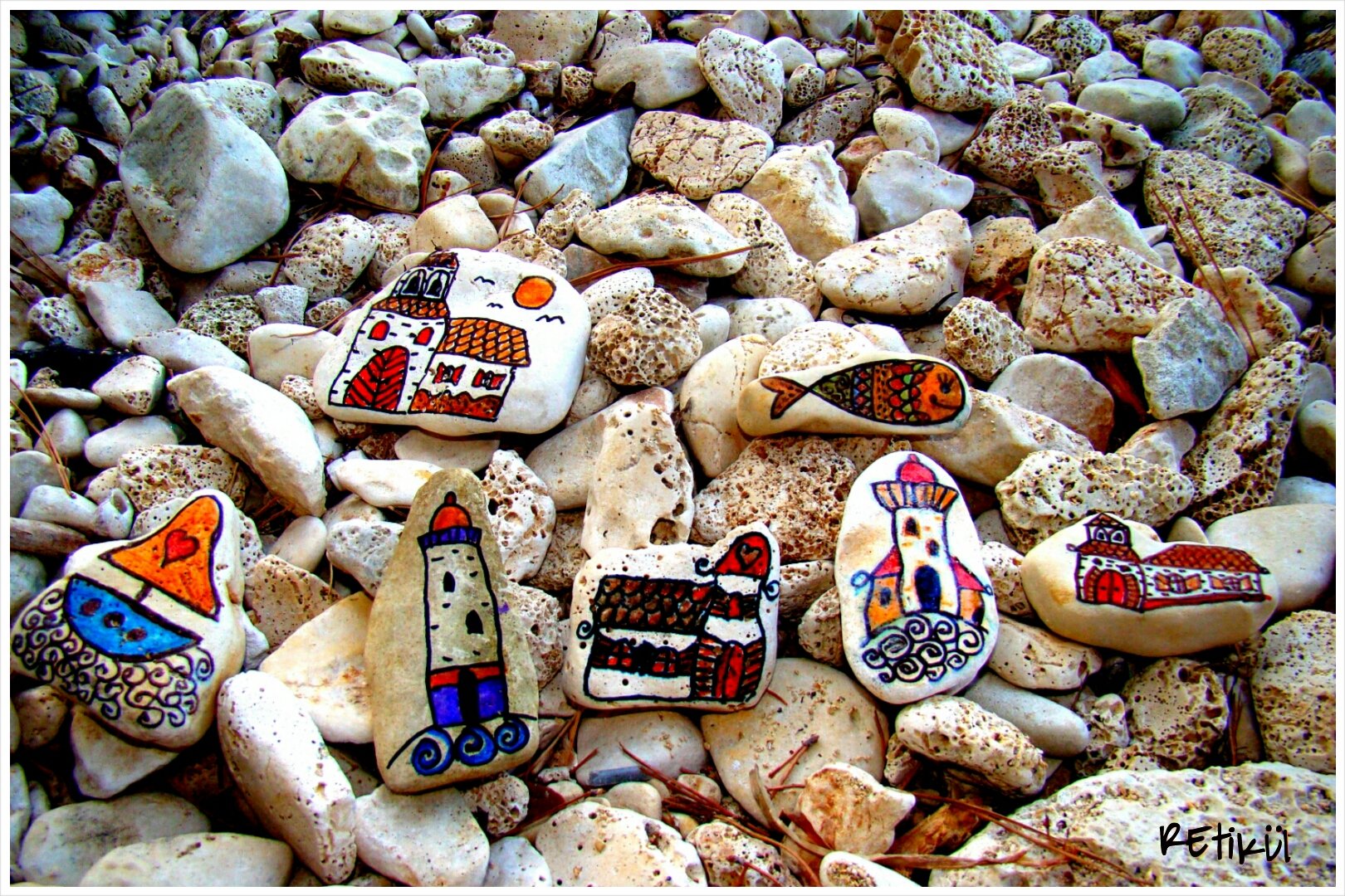 Ím az első rajzolt köveink a tengerpartról: