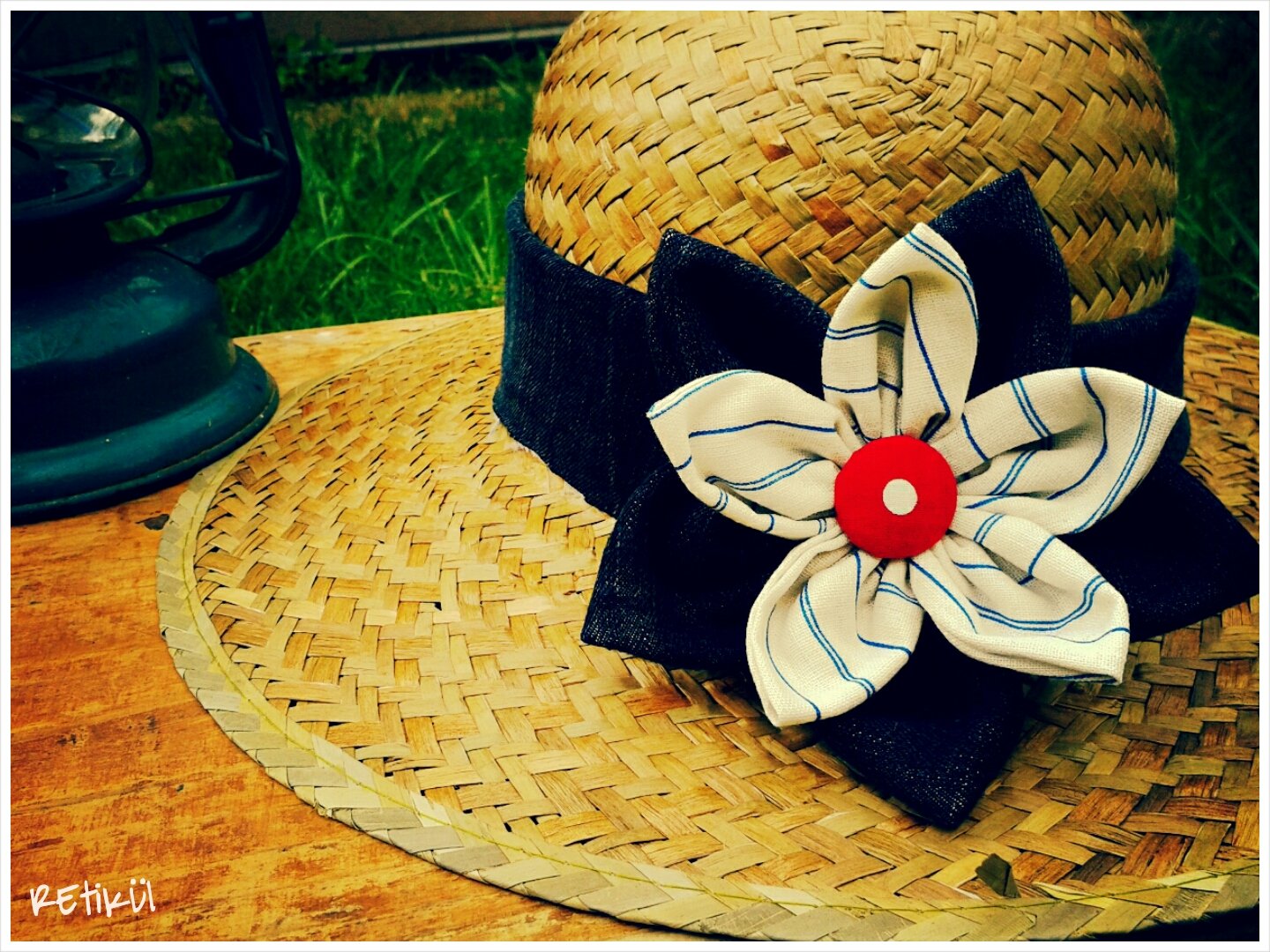 6.Összeragasztjuk ragasztó pisztollyal.A közepére gyöngyöt,gombot ragasztunk.
