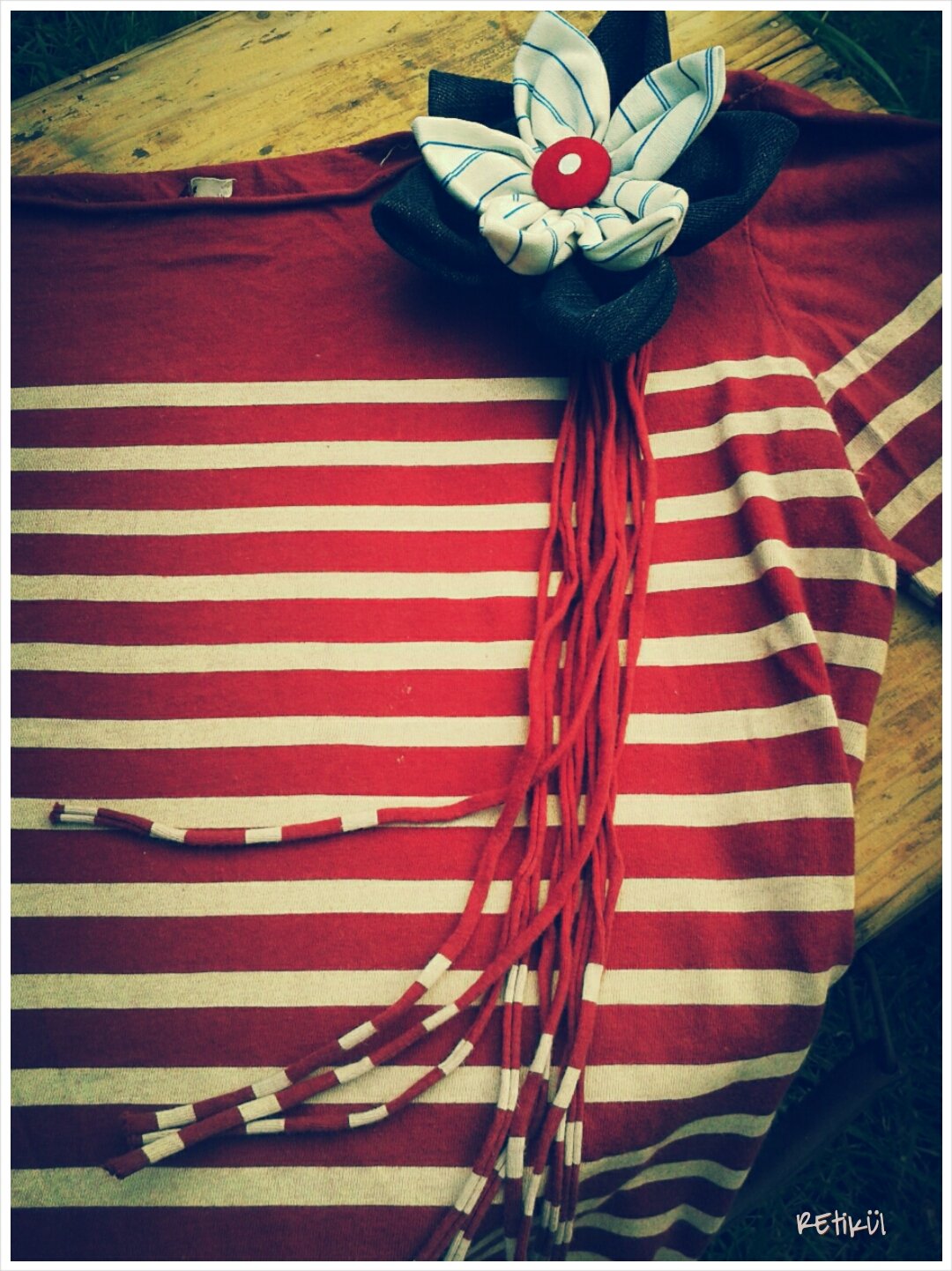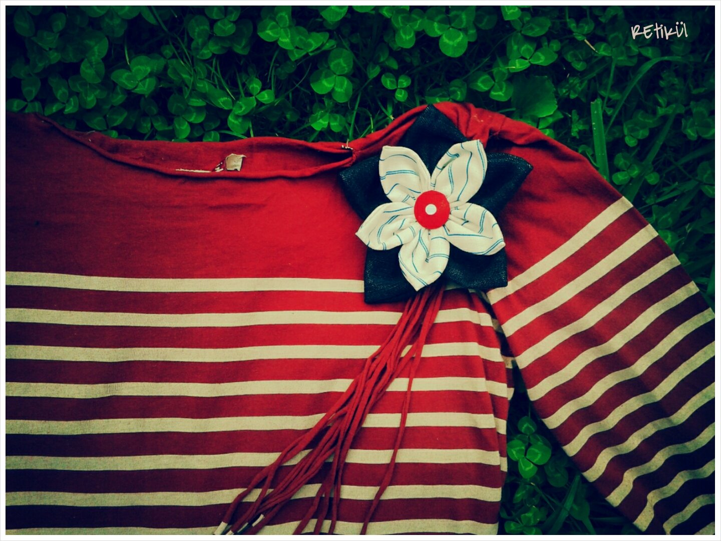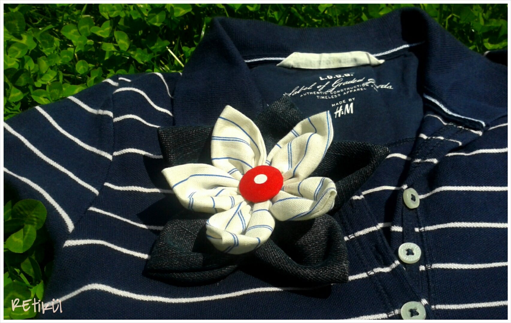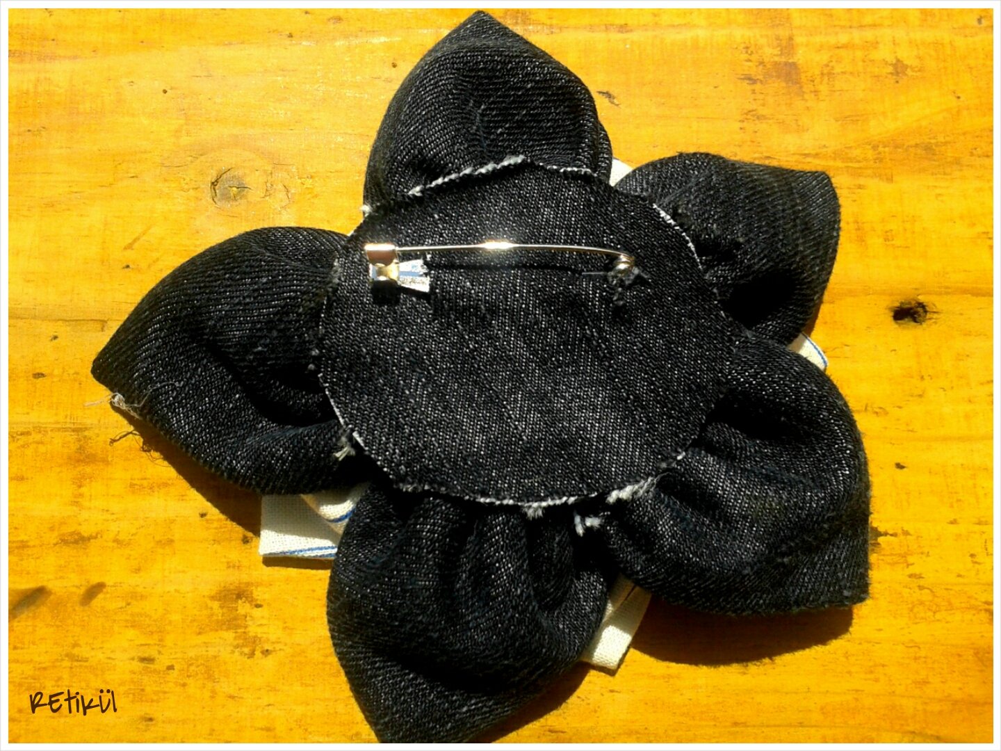Figyeljünk arra,hogy a kitűző ne pont középre,hanem feljebb kerüljön,mert lehúzhatja a súlya és előre billenhet.