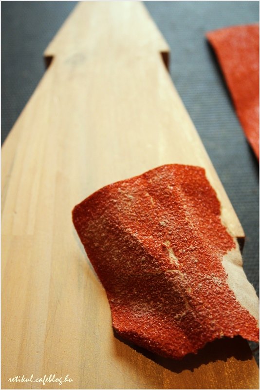 2.Smirglivel lecsiszoltam az aranyos felületet,sőt még azon túl is,jól átdörzsöltem durva smirglivel,minél karcosabb legyen.