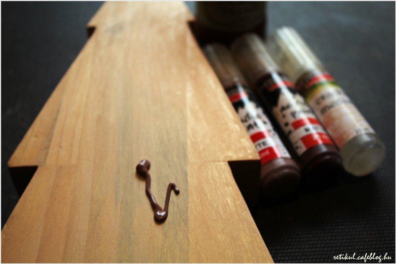 4.Aztán jött a festék.Akrilt(Pentart) használtam (mert az mindig van otthon),kétféle barnát,feketét,szürkét.