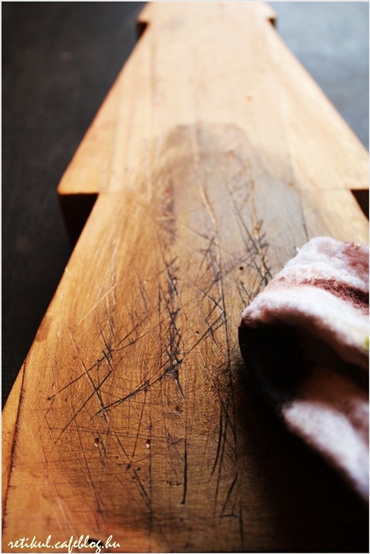 Addig festékeztem,törölgettem oda-vissza,míg a kívánt hatást el nem értem.