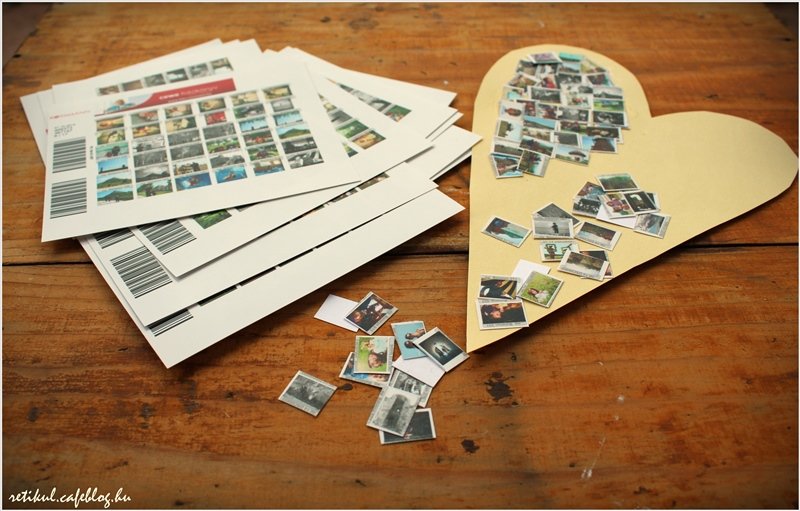 Apró képecskékkel teleragasztottam egy szív formát,kertebe tettem.