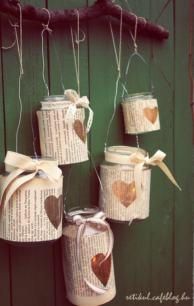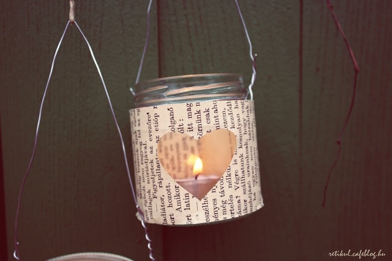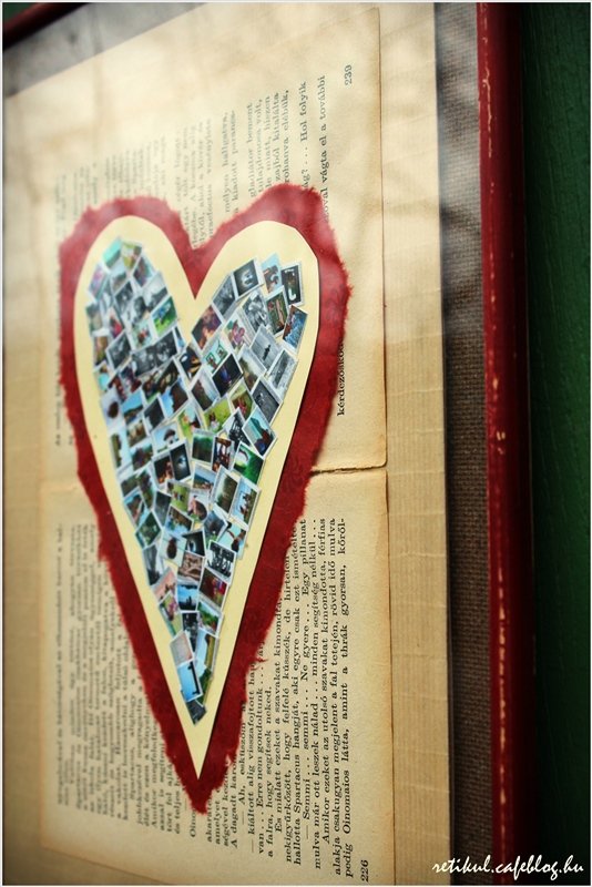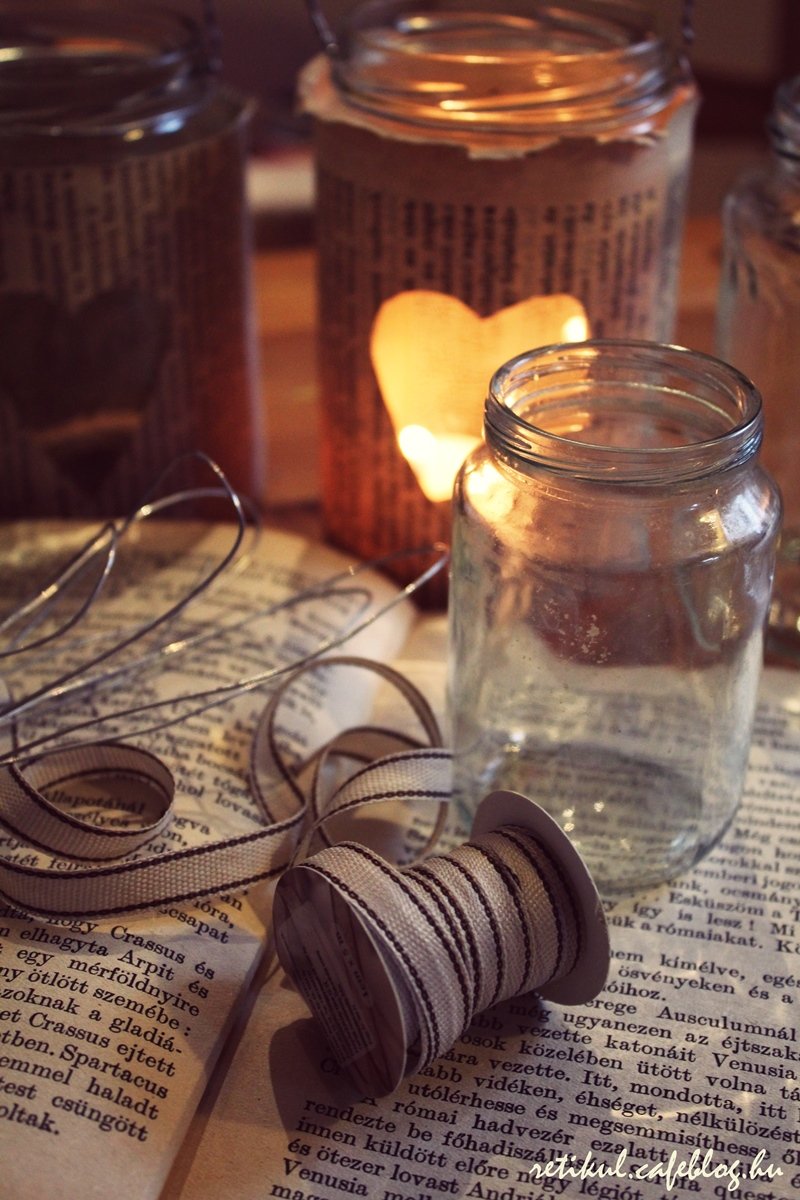 Dunsztosüvegere régi,tönkrement könyvlapjait ragasztottam,előtte persze egy kis szívet vágtam ki.
