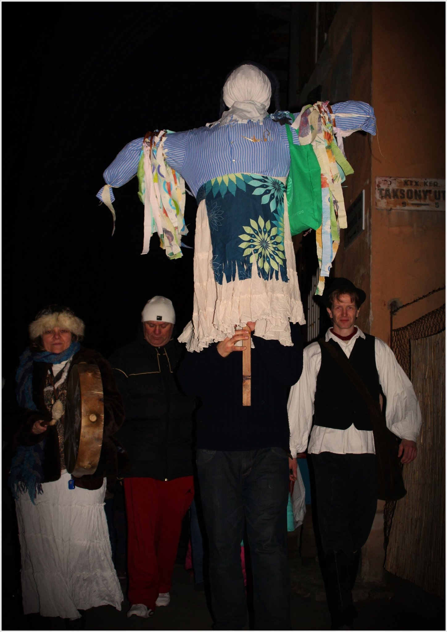 A tarisznyába pedig gondűző cetliket tettünk.Mindenki búját,baját,bánatát ráírhatta ezekre,hogy aztán jól elégessük azokat is a bábuval együtt.