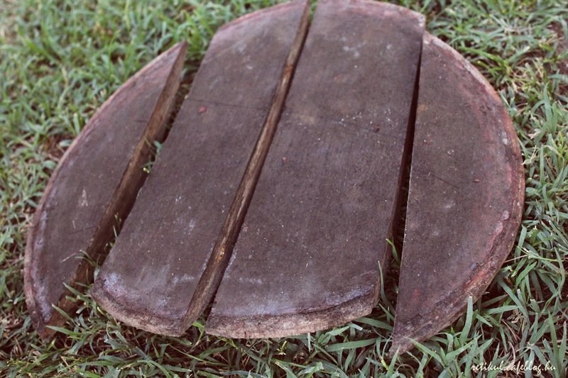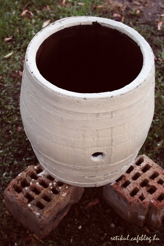 Ím az eredeti hordó,amiről apu segítségével leszedtem a z abroncsokat,hogy a teteje levehetős legyen,tudjunk bele pakolni majdan…