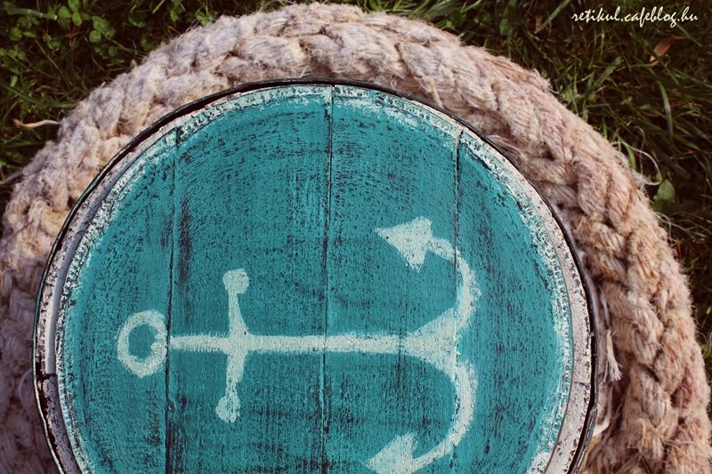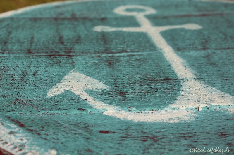 A tetejére első rétegben,ASCP cream szín került,majd florance kék és a horgonyt(sablon nélkül) megint cream színnel festettem.Visszacsiszoltam.