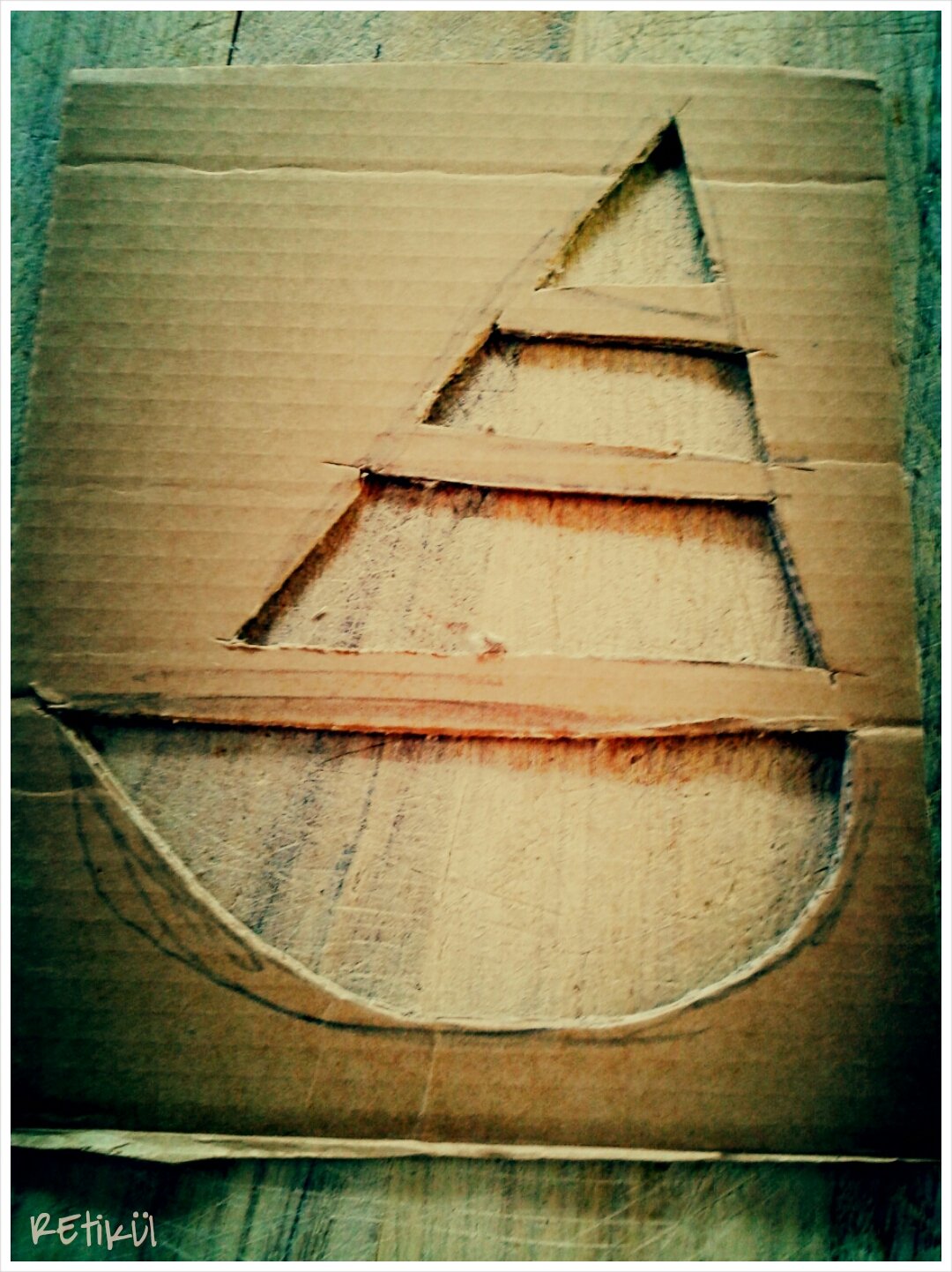 1.Kivágjuk sniccerrel a vitorlás formát,tetszés szerint a kartonból.