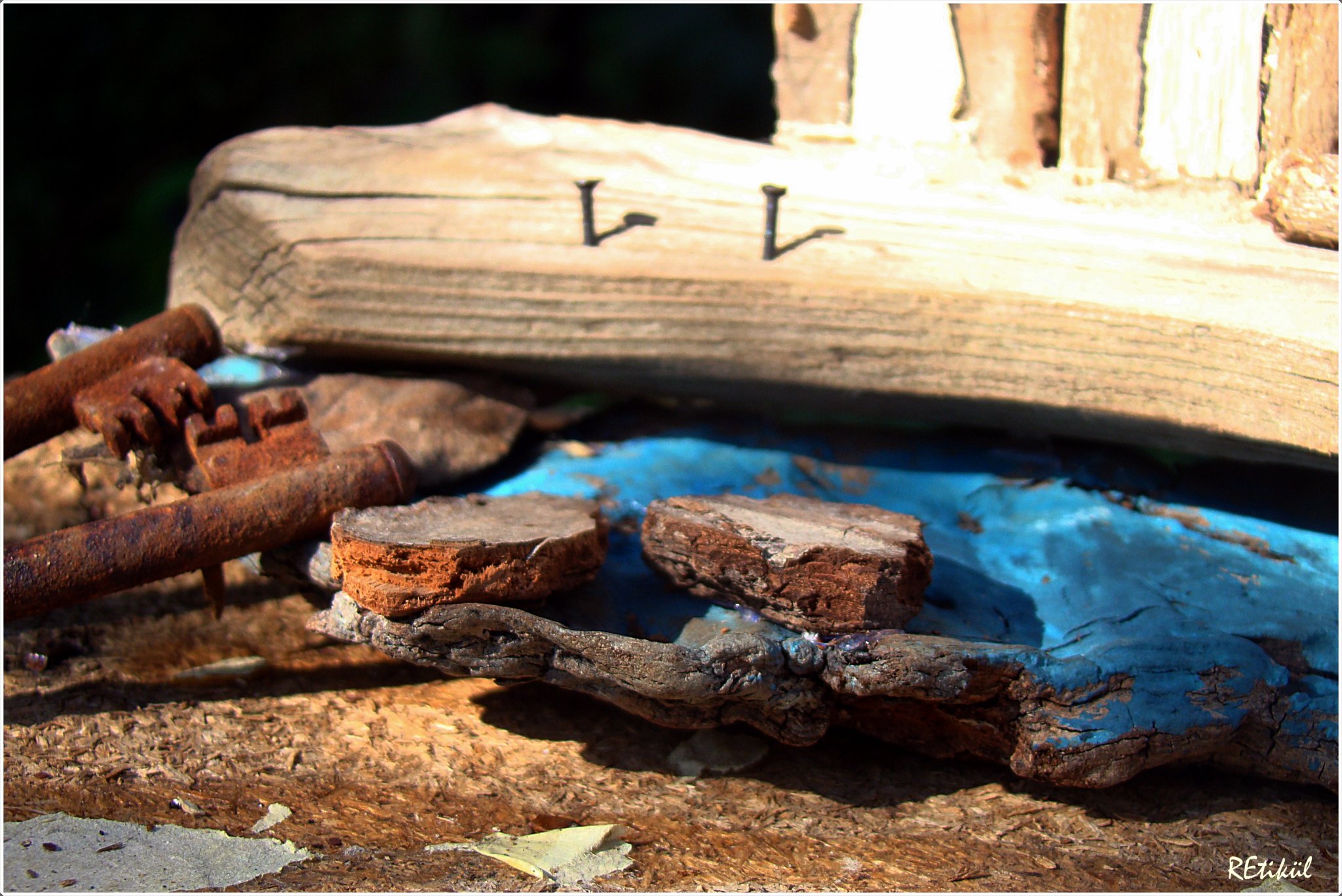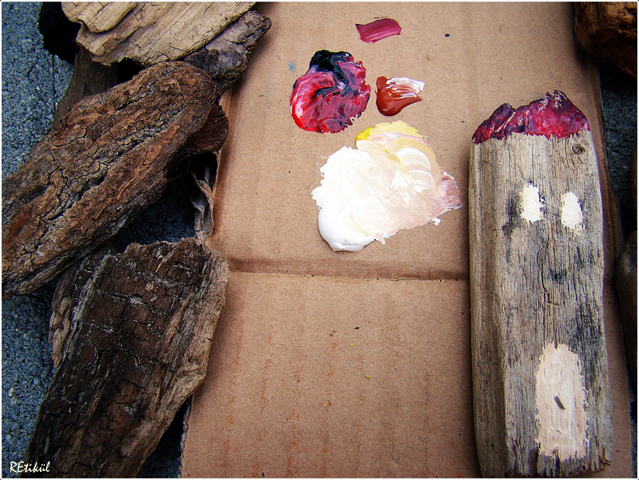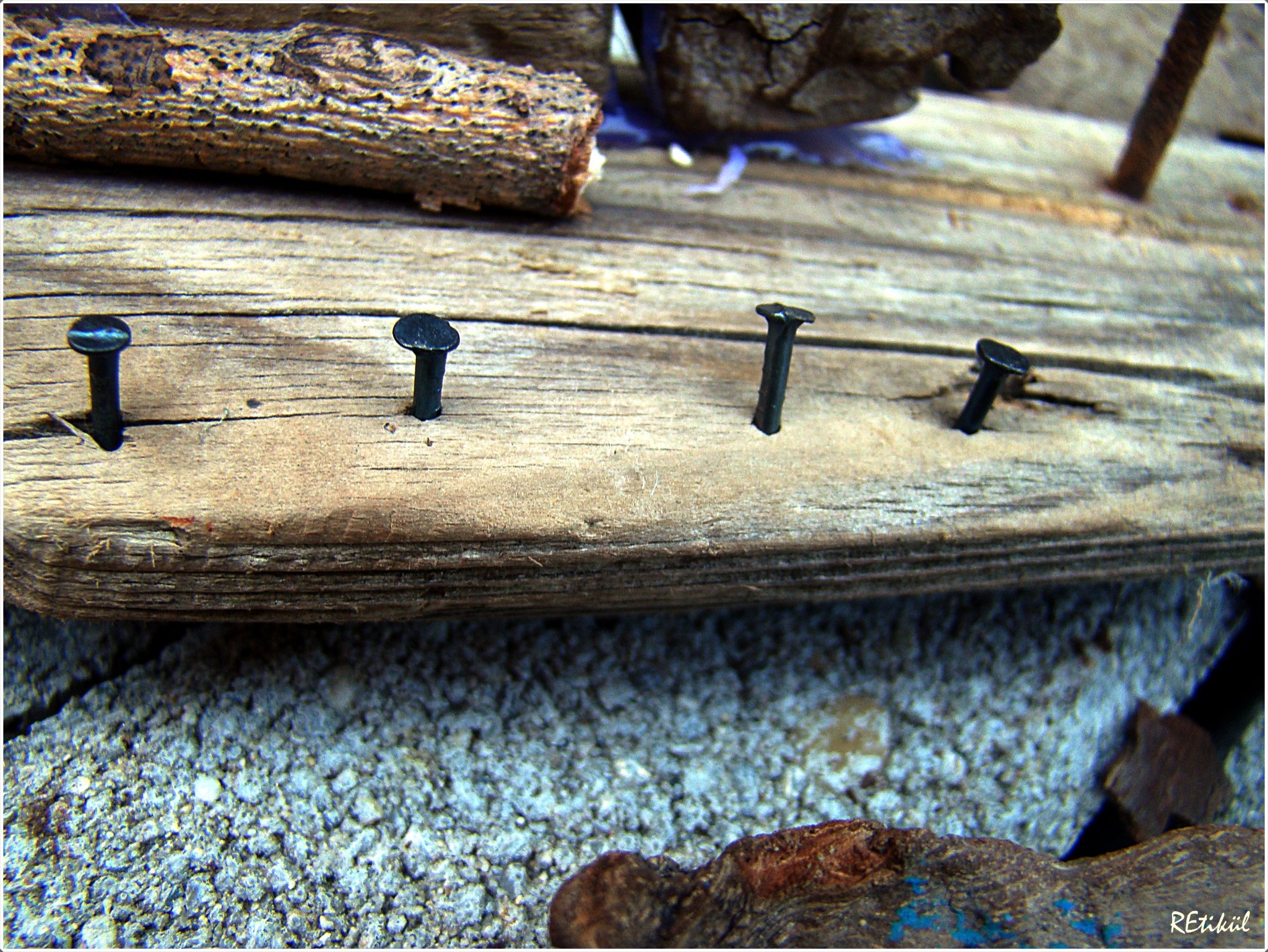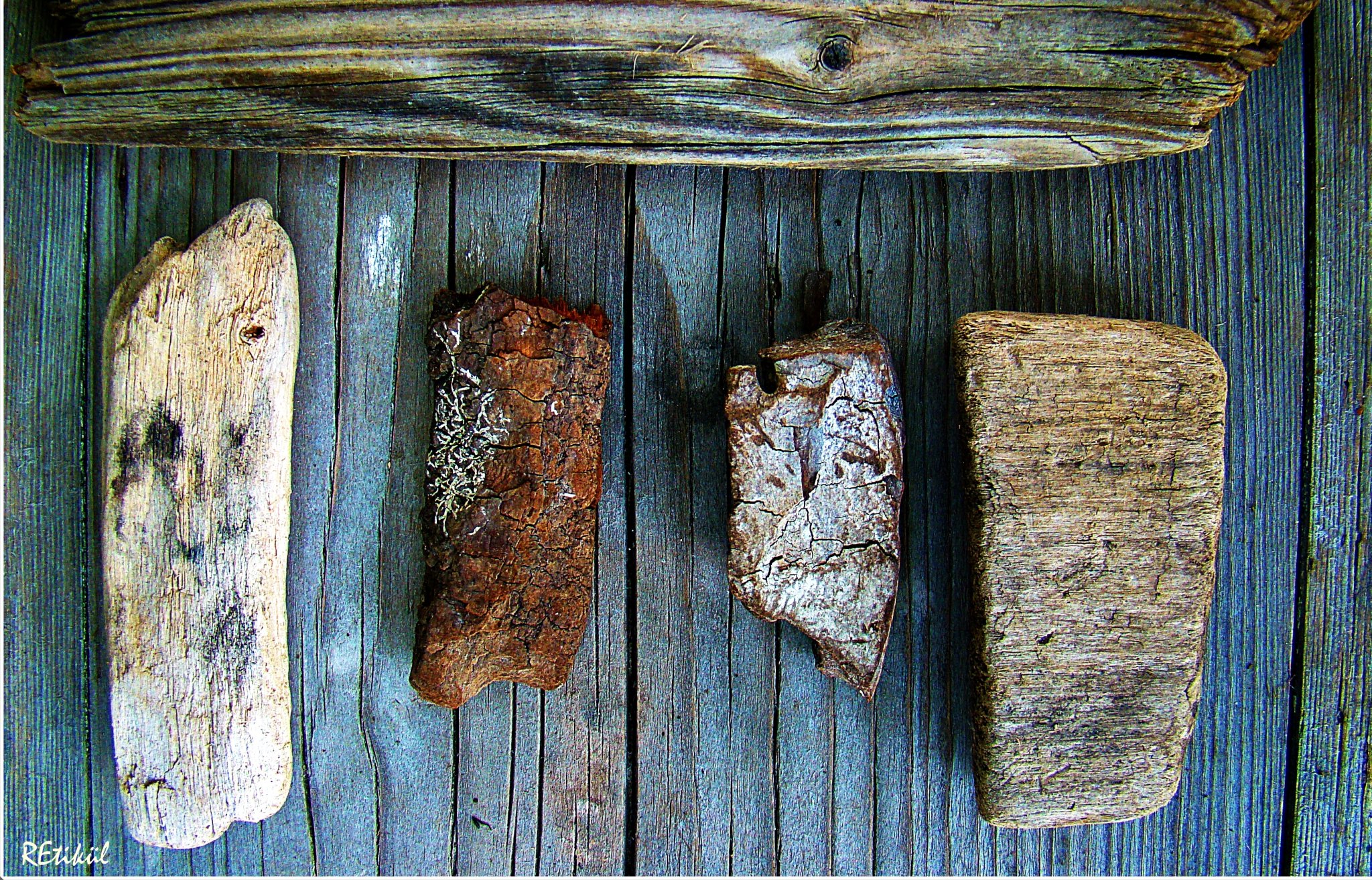 A legalulra kerülő uszadékfát is befestettem,kékre,kopottasan.