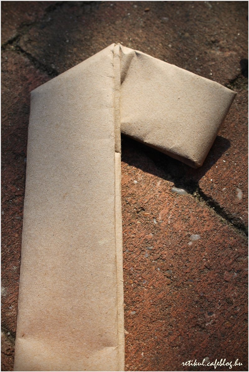 2 db.téglalap alakú papírt,kb.4 centis csíkra hajtunk.Majd félbehajtjuk mindkettőt.