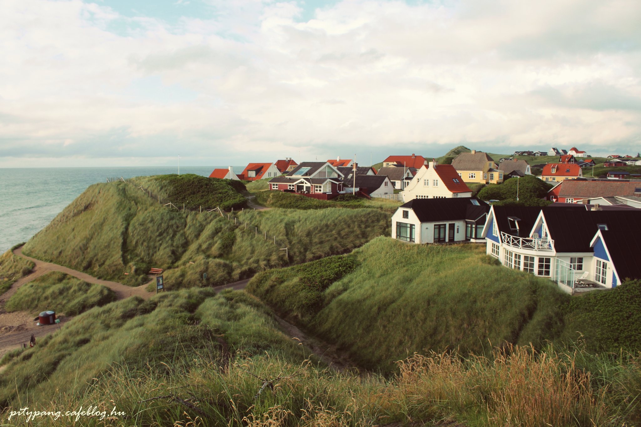A tengerparti házak színesebbek,a közvetlen parti házak pár méterre a tengertől,homokdűnék(amiken vadrózsa nő mindenfelé) takarásában.